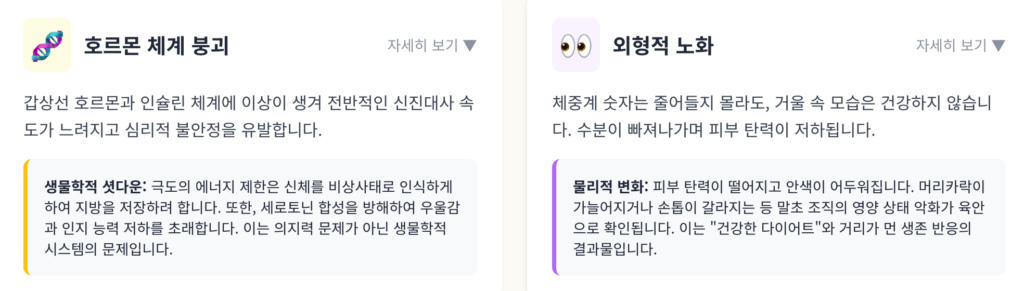 에너지원이 부족할 때 나타나는 신체의 위험 신호를 단순히 적응 과정으로 치부하는 경향이 있습니다. 어지러움이나 피로감을 체지방이 타는 증거라고 믿는 잘못된 해석이 커뮤니티를 통해 공유됩니다. 탄수화물 섭취를 재개하는 것을 요요 현상의 시작으로 보고 두려워하는 심리적 장벽이 높게 형성되었습니다.