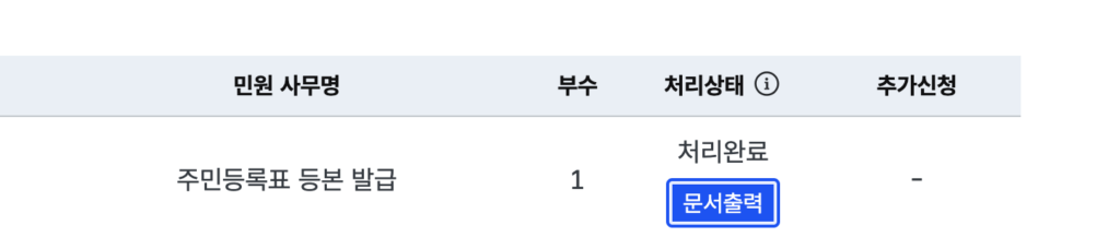 5. [MyGov] > [서비스 신청내역]에서 출력 버튼을 누릅니다.